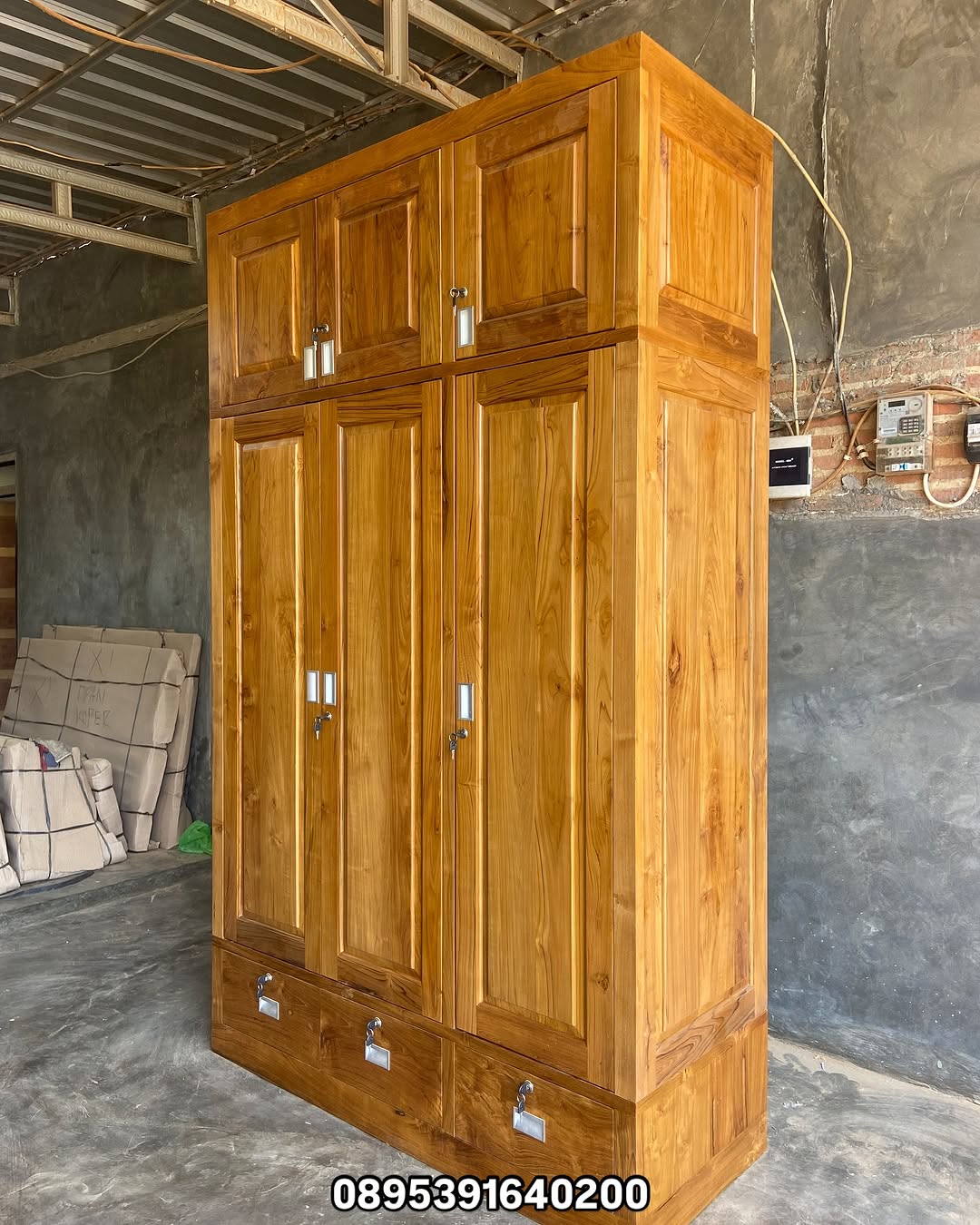 Sora Lemari Pakaian 3 Pintu adalah model lemari pakaian minimalis yang unik dan kekinian. Lemari ini memiliki tiga pintu dengan tipe pintu tarik yang elegan dan mudah diakses. Model lemari pakaian 3 pintu minimalis ini terbuat dari bahan kayu jati solid yang kuat dan tahan lama. Dengan demikian, lemari ini cocok untuk digunakan dalam jangka panjang. diatasnya ada ruang yang cukup untuk sebagai penyimpanan, koper dll
